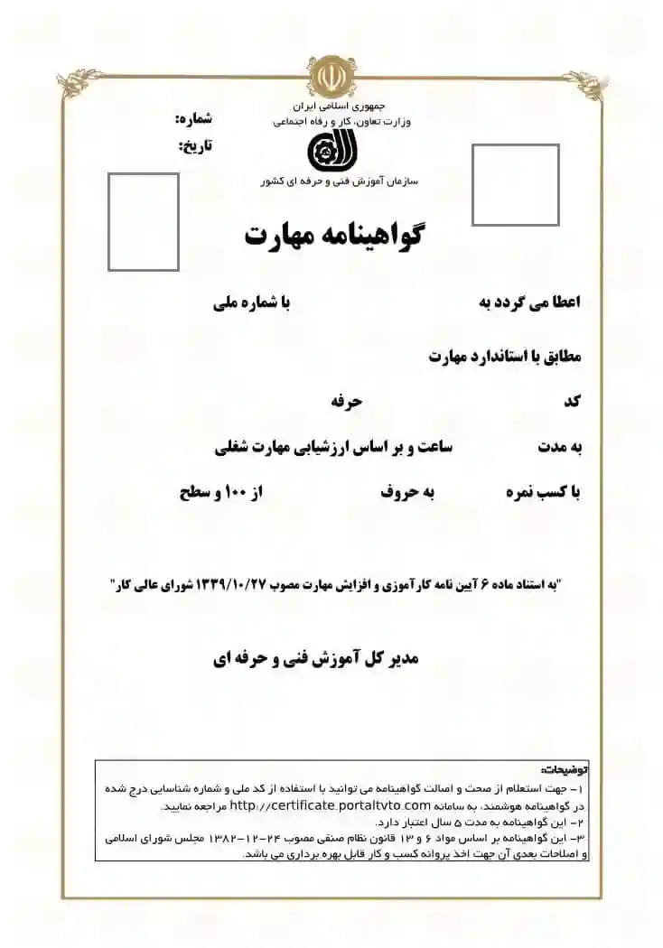 ✅دریافت مدرک بین المللی فنی و حرفه ای